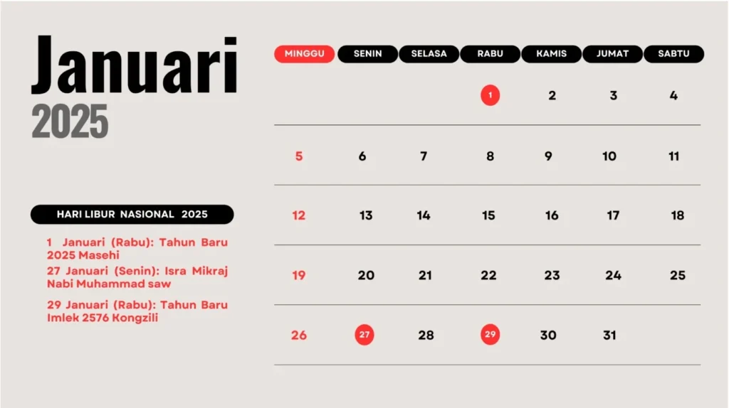 Kalender 2025 Indonesia mencerminkan keberagaman budaya, agama, dan tradisi. Berbagai hari besar keagamaan dan nasional dirayakan, seperti Tahun Baru Masehi,